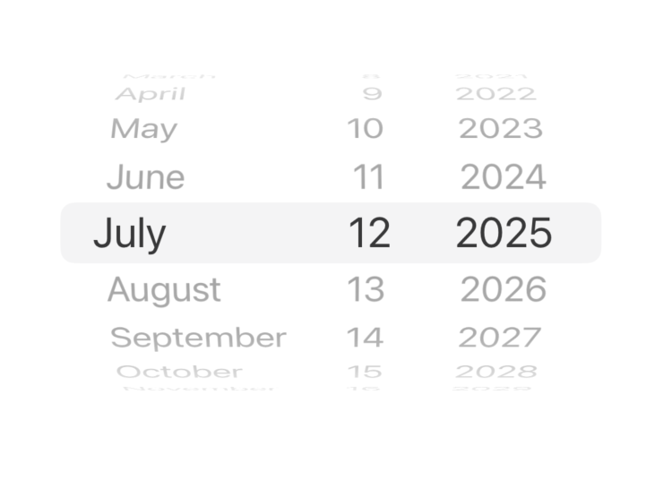 Apple의 UIPickerView는 내부적으로 수직 리스트를 단순히 보여주는 것이 아니라, 3D 원기둥 위에 컨텐츠를 배치한 것처럼 곡면 시각 효과를 적용합니다.