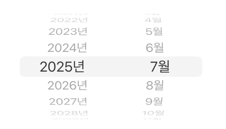 따라서 년도와 달을 보여주는 PickerView를 만들면 디자인으로 위의 사진과 같이 구현이 됩니다!